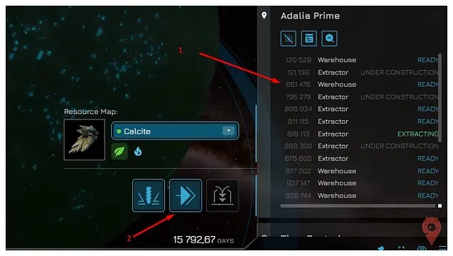 А другие 2 Extractor’a должны добыть 2 других ресурса (Например Calcite и Bitumen) в малом объеме, но как можно быстрее.