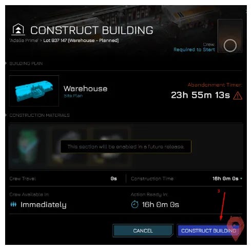 Учтите что постройка займет 16 часов, по завершению нажмите “Complete”