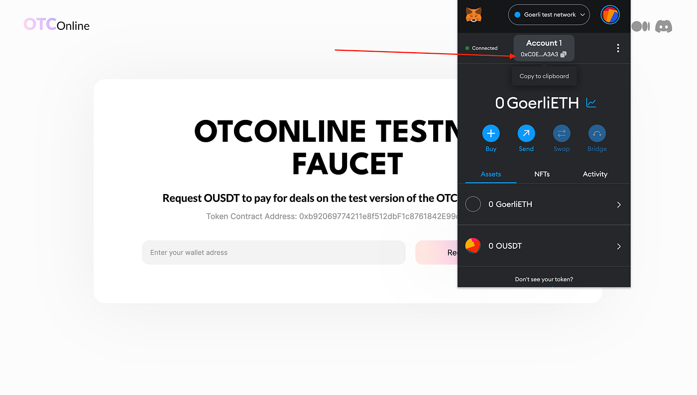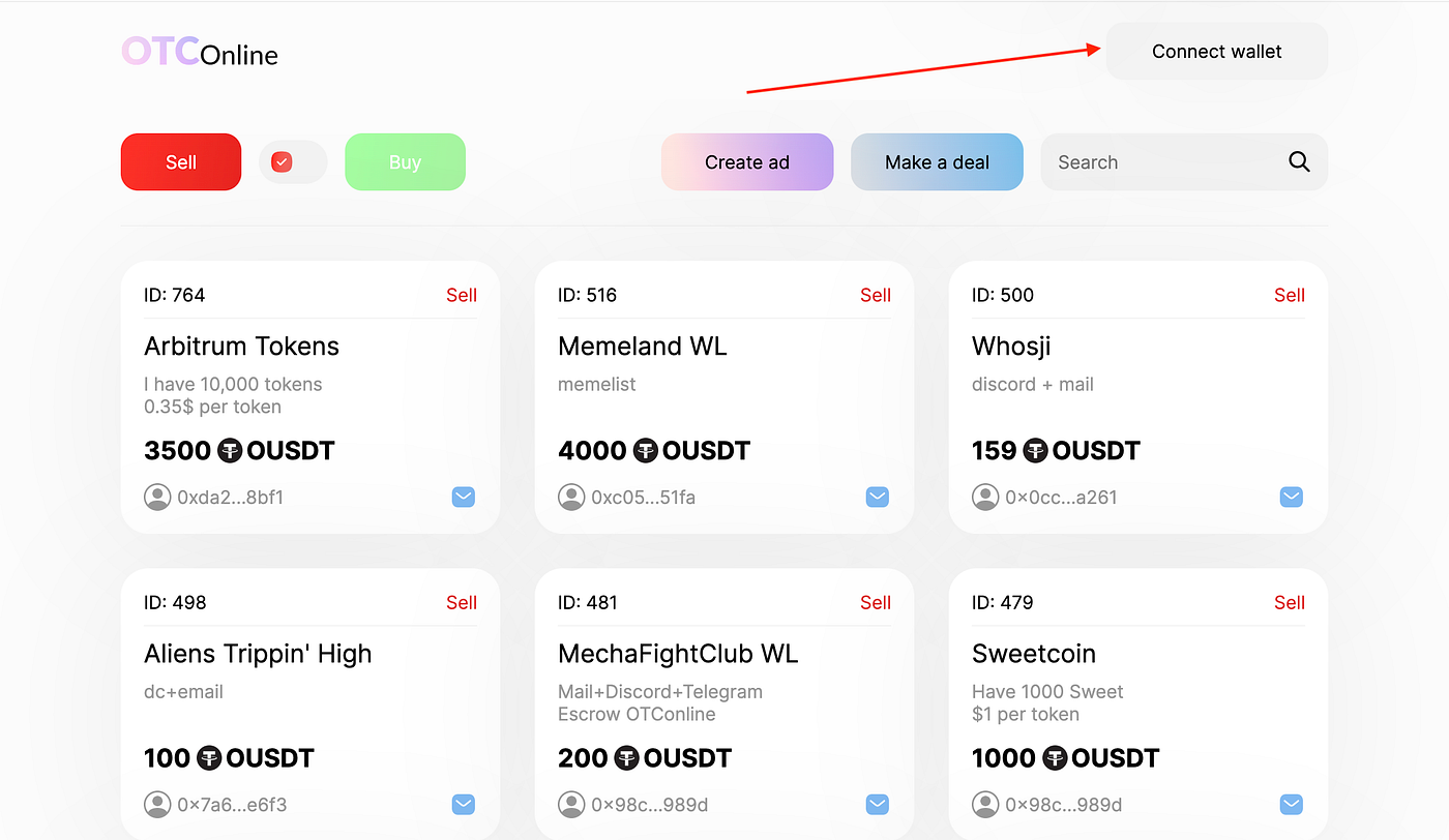 2.1. Переходим на сайт OTCOnline и подключаем кошелек.