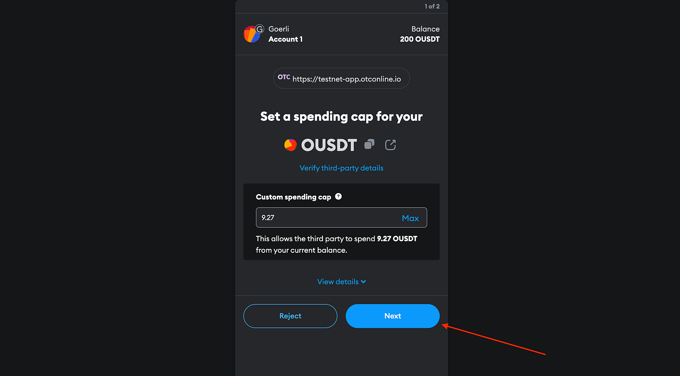 1.4. Чтобы $OUSDT начали отображаться на вашем кошельке вставьте адрес контракта токена к себе в метамаск. Для этого выберите меню импорт токена, далее вставьте адрес контракта 0xb92069774211e8f512dbF1c8761842E99d440508