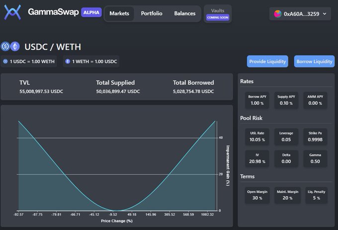 GammaSwap - DeX на волатильность Arbitrum, где работяги смогут открывать позиции на изменения стоимости LP и простых свапов токенов. Также можно заливать ликву напрямую на платформу, мигрируя остальные DeFi платформы и лутать профит со своих LP токенов, причём покрытием профита займутся работяги, играющие на повышение по стоимости LP.