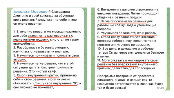 А вот ее результаты после полного прохождения годовой онлайн-программы “Мастер общения”.