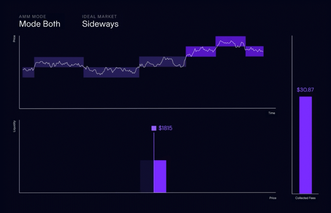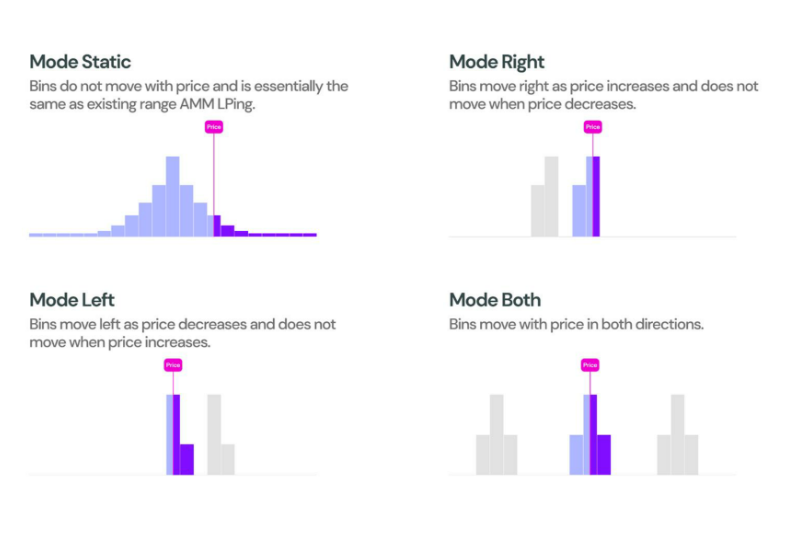 LP в Maverick AMM могут выбирать, должны ли LP следовать за движением цены, повышая эффективность капитала. Перемещение ликвидности полностью децентрализовано и является встроенным в протокол, автоматизировано и происходит в рамках взаимодействия трейдеров с контрактами.