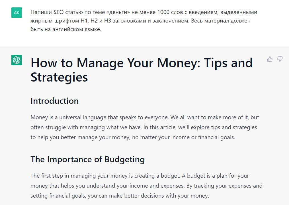 SEO статья — это статья, написанная с учетом оптимизации для поисковых систем, основной целью которой является привлечь больше посетителей на веб-сайт через поисковые запросы. ChatGPT может помочь в написании SEO статей, используя свою обширную базу знаний, но для достижения максимального эффекта чат-боту необходимо учитывать особенности отрасли и целевой аудитории. Разберем подробнее процесс написания SEO статей через примеры промптов.