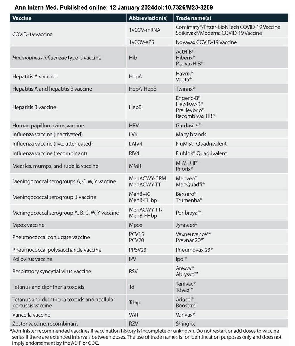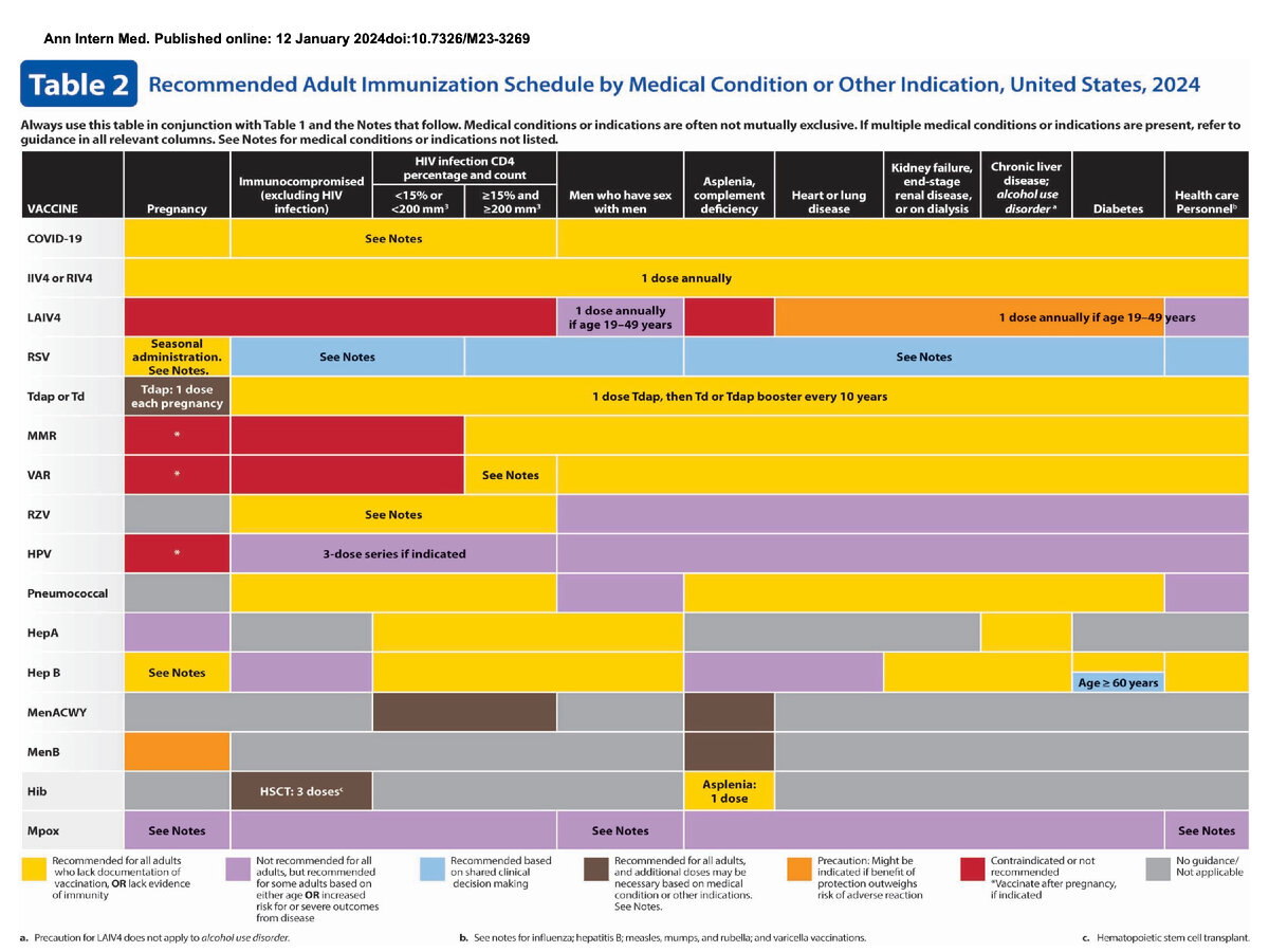 Новые рекомендации по вакцинации взрослых ACIP/CDC 2024 в США