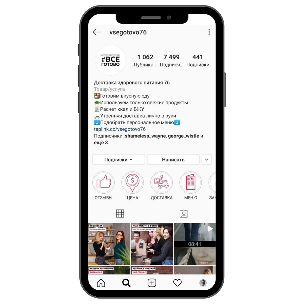 Сервис доставки правильного питания в Ярославле. Неоформленный аккаунт в Инстаграм. Отсутствует реклама и сайт.