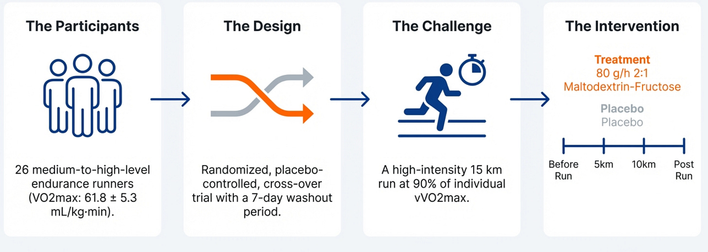 Доступность углеводов до, во время и после выносливостной нагрузки давно рассматривается как ключевой фактор, влияющий на сохранение гликогена, уровень метаболического стресса и выраженность воспалительной реакции после тренировки. Высокоинтенсивный бег, особенно при частой соревновательной или интервальной нагрузке, вызывает кратковременное, но выраженное повышение воспалительных и гормональных маркеров, что потенциально ухудшает восстановление. При этом данные о том, как именно конкретные углеводные формулы влияют на воспалительные и липидомные ответы, до сих пор остаются ограниченными.