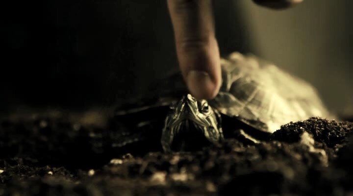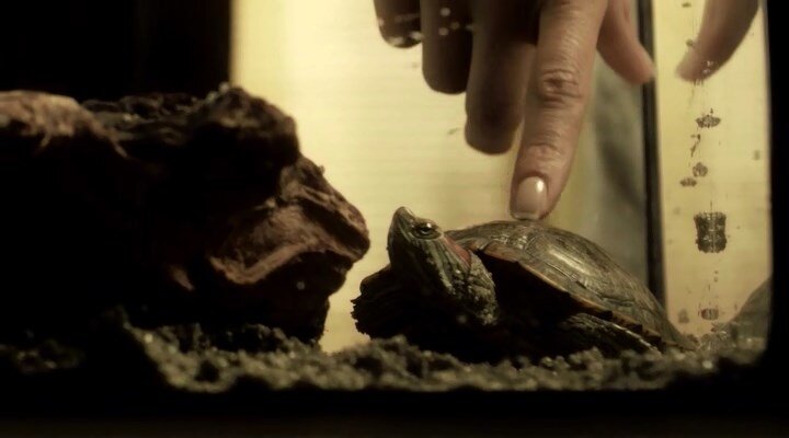 Посреди комнаты стоит большая кровать, вдоль стены расставлена коллекция скрипок, в большом аквариуме сидит черепашка. Время от времени Вандамм подходит к аквариуму и стучит пальцем черепахе по темечку. Животному это не нравится, и черепашка каждый раз прячет свою головёнку в синяках под панцирь.