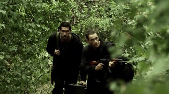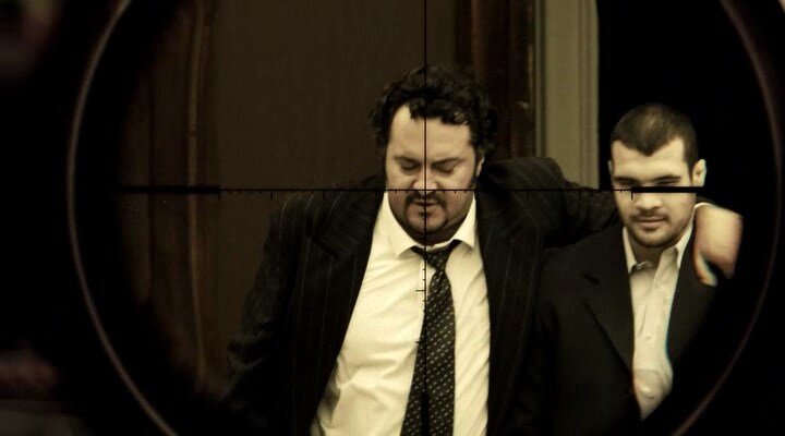 Но это фильм, а поэтому были речи, потом парни изобразили ссору между собой, упали на пол, а программируемая винтовка с лазером, установленная неподалёку, отстреляла всех боевиков Петра.