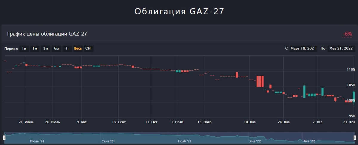 Вот так, выглядит график стоимости замещенной облигации Газпрома с погашением в 2027 году: