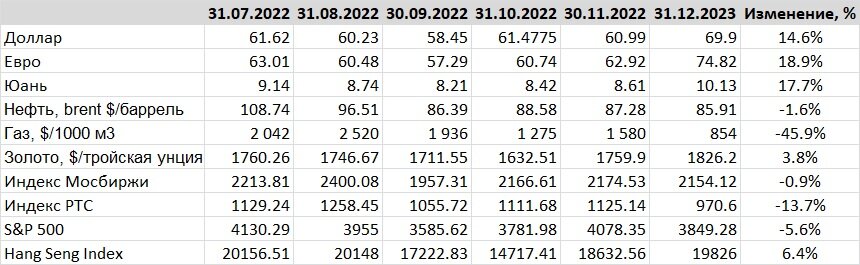 Основные показатели экономики и фондового рынка за декабрь 2022. Что ждем в 2023 году?