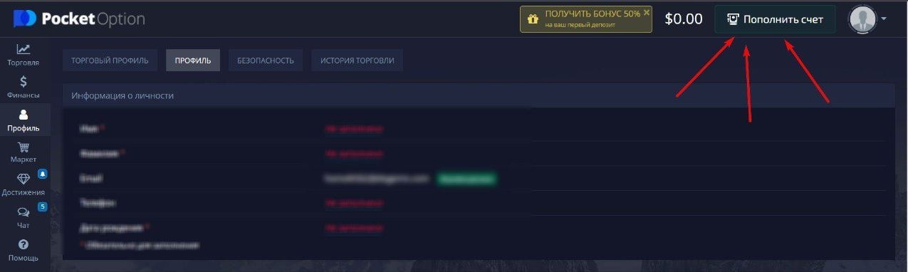 Для того что бы начать торговать через бот , необходимо пополнить Ваш аккаунт на 50$