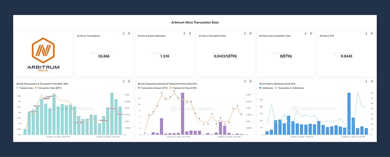 Arbinauts, as the Arbitrum community is affectionately known, can now leverage Footprint Analytics’ tools to track the growth and adoption of Arbitrum One and Nova over time. This historical perspective enables users to identify trends, patterns, and growth trajectories within the ecosystem.