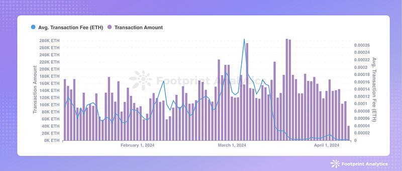 Post-Ethereum’s Dencun Upgrade in March, Layer 2s saw a dramatic reduction in average transaction fees. Arbitrum and Starknet slashed costs by over 95%. This significant decrease ushers in the “1 cent” era for transaction fees within the Ethereum ecosystem.
