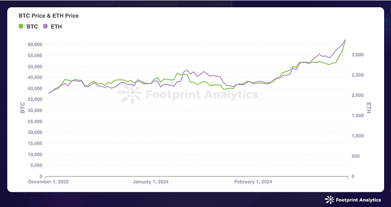 February 2024: Crypto Climbs, NFT Adjusts Â