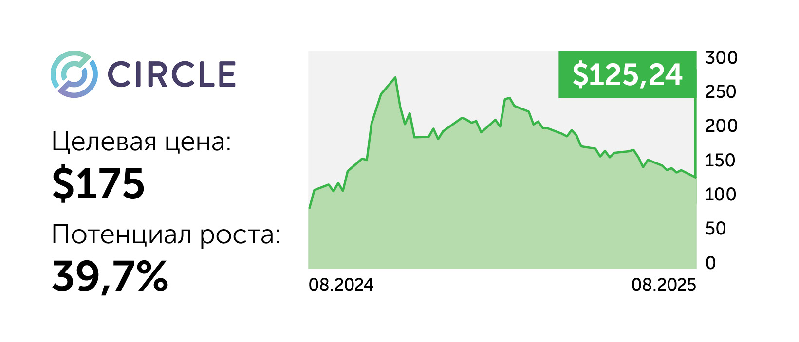 Circle (CRCL) – эмитент привязанного к стоимости доллара США стейблкоина USDC и разработчик блокчейн-инфраструктуры. На IPO в июне 2025-го эмитент привлек более $1 млрд. Во II квартале выручка Circle увеличилась на 53%, до $658 млн. Объем USDC в обращении повысился на 90% г/г до $61,3 млрд, а к 10 августа достиг $65,2 млрд. Вступление в силу закона о стейблкоинах (GENIUS Act) легализует актуальную бизнес-модель компании, что значительно ускорит процесс интеграции USDC в традиционную финансовую систему. Дополнительный позитив обеспечат партнерства с Corpay, Fiserv и Binance, а также запуск платформы Arc для рынков капитала.