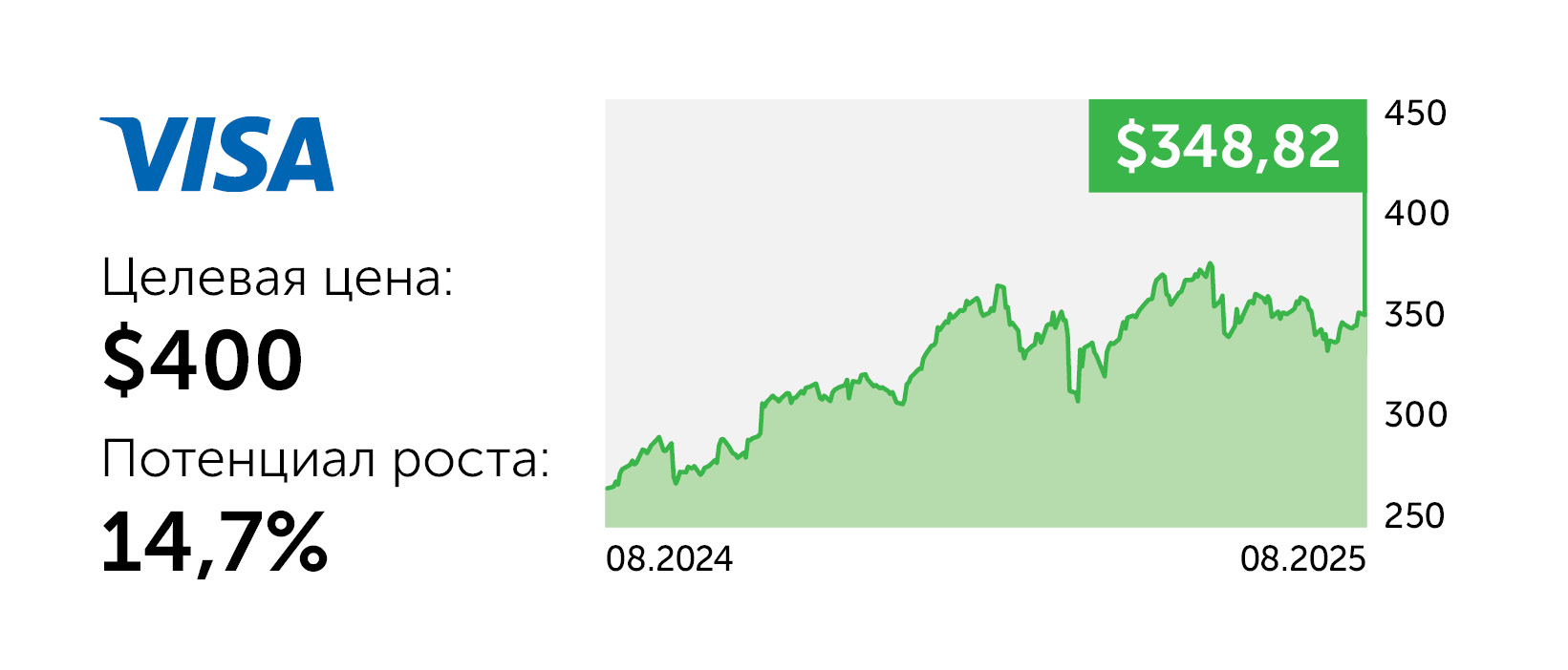 Visa (V) – крупнейшая международная платежная система с годовым оборотом транзакций свыше $14 трлн. В обозримом будущем массовое вытеснение банковских карт стейблкоинами маловероятно, более реалистично выглядит сценарий интеграции цифровых валют в экосистему Visa. При этом корпорация активно инвестирует в инфраструктуру USDC и развивает API для цифровых валют. Бизнес компании устойчиво демонстрирует двузначные темпы роста при чистой марже выше 50%. Позитивными драйверами для акций эмитента остаются интеграция блокчейн-решений, увеличение объема безналичных платежей и масштабные программы обратного выкупа.