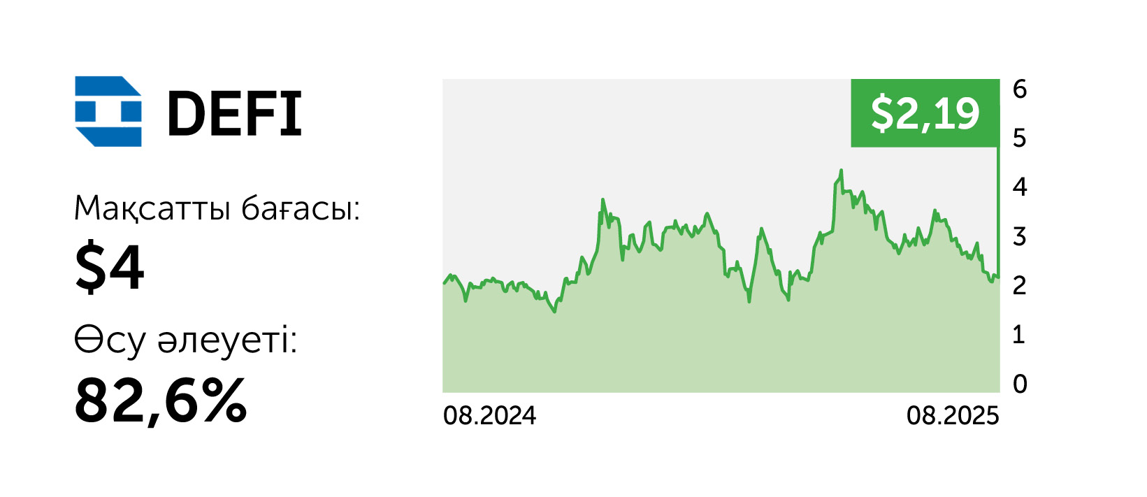 DeFi Technologies (DEFT) – биткоин мен ірі альткоиндерге назар аудара отырып, өнімдерді ұсынатын басқарушы компания. Американдық заңнаманың өзгеруі DeFi-дің барлық инфрақұрылымын қолдайтын стейблкоиндер мен токенделген құралдар үшін реттеуші базаны құрады. Эмитент үшін бұл басқарудағы активтер көлемінің ұлғаюын және оның өнімдеріне сұраныстың артуын білдіреді. Қосымша оң триггер компанияның ең аз шығынмен жаңа өңірлерге бизнес-экспансиясын қамтамасыз етеді. DEFT акцияларын түзету алты айдан бір жылға дейінгі көкжиектегі инвестициялар үшін тартымды мүмкіндік ашады.