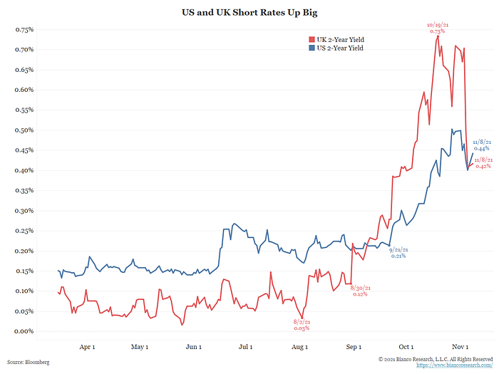 Как я уже упоминал ранее, я пришел на это заседание с опасением, что недооцениваю риск того, что центральные банки действительно серьезно настроены бороться с инфляцией, которую они создали, сократив покупку облигаций и повысив краткосрочные процентные ставки. Моя базовая версия заключается в том, что центральным банкам политически целесообразно продолжать финансирование государственных программ стимулирования за счет расширения своих балансов. Я также считаю, что все основные центральные банки имеют неофициальный мандат на то, чтобы рынки акций продолжали расти. Инфляционное давление этой политики - необходимое зло, гарантирующее, что программы внутренних расходов могут быть оплачены за счет роста цен на активы. Остановка денежного принтера приведет к снижению цен на активы и сделает многие финансовые институты и правительства неплатежеспособными. Поэтому этого просто не может произойти - или я так считаю.