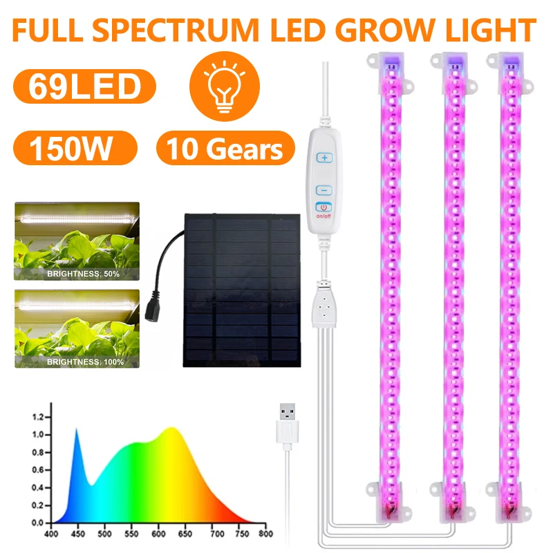 ✅ 150W Панели солнечные светодиодный Grow светильник полный спектр 10 передач USB СВЕТОДИОДНЫЙ светильник бары фитолампами для растений цветы парниковых гидропоники