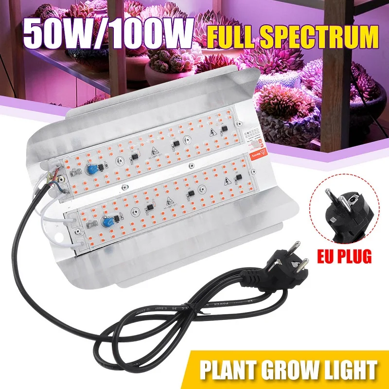 ✅ 50 Вт 100 Вт Светодиодный светильник для выращивания с европейской вилкой, полный спектр, высокая мощность, светодиодный прожектор, светильник s, гидропоники, сеялка, 220 В, IP65, водонепроницаемый