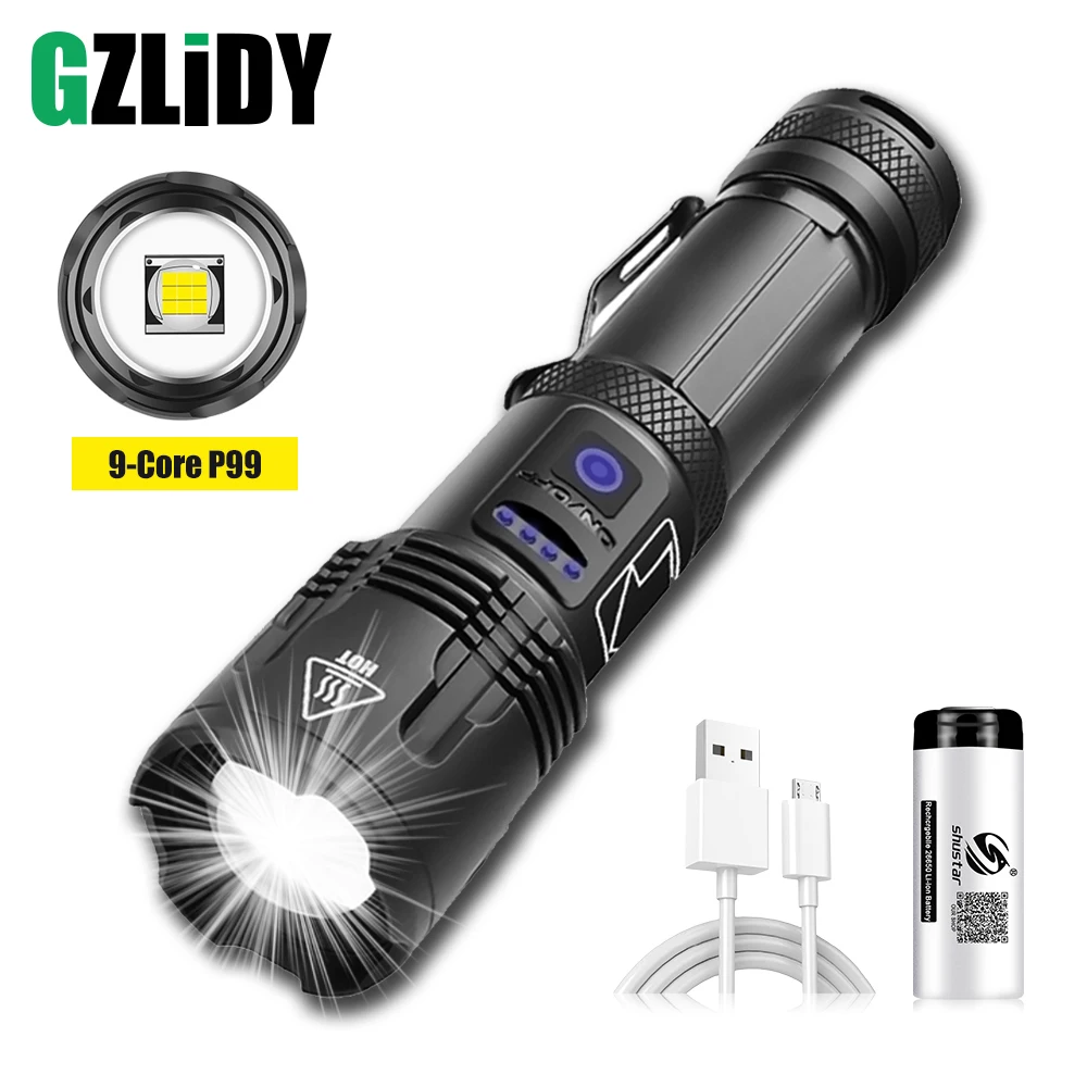 ✅ Мощный светодиодный фонарик XHP99, перезаряжаемый от USB водонепроницаемый фонарик с дисплеем на батарейках, телескопический зум, суперъяркий ...