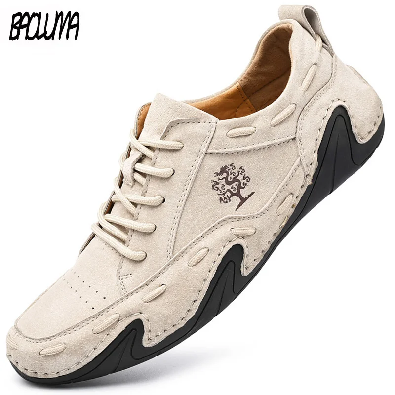 ✅ Мужские замшевые туфли из натуральной кожи, повседневные водонепроницаемые, Нескользящие, дышащие, для вождения, прогулок, плоская подошва