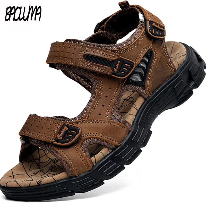✅ Сандалии мужские из натуральной кожи, деловая повседневная обувь, дышащие дизайнерские уличные пляжные босоножки, римские кроссовки для воды, лето