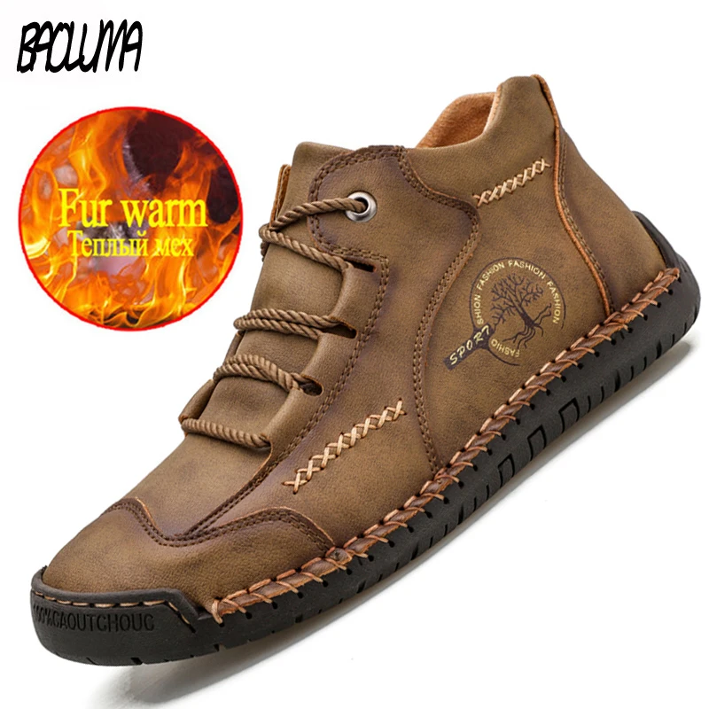 ✅ Мужская повседневная обувь, мужские кожаные зимние мужские ботинки, водонепроницаемые дышащие мокасины, дизайнерская стильная обувь для прогулок, удобные кроссовки