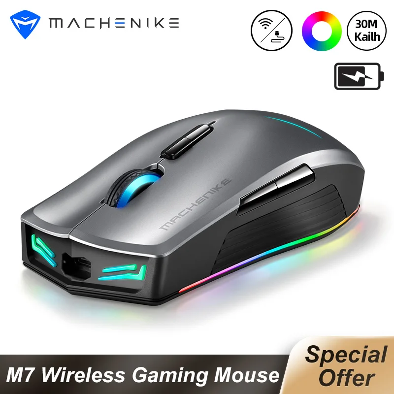 ✅ Беспроводная мышь Machenike M7, игровая мышь 16000 DPI OMRON RGB с подсветкой, программируемая перезаряжаемая компьютерная мышь PMW3212/PMW3335