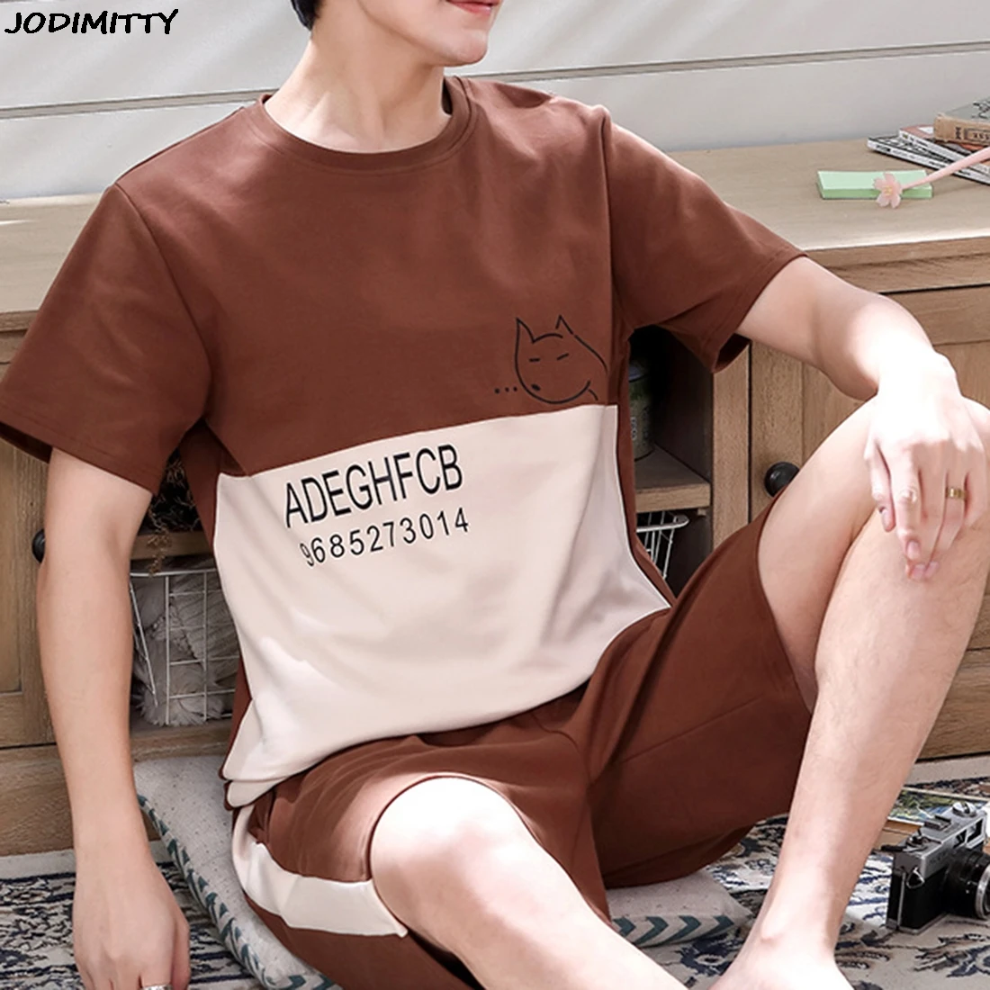 ✅ Пижамный комплект Jodimitty мужской, летние хлопковые мягкие шорты с коротким рукавом, комплект одежды для дома, Корейская простая модная свободная повседневная одежда для отдыха