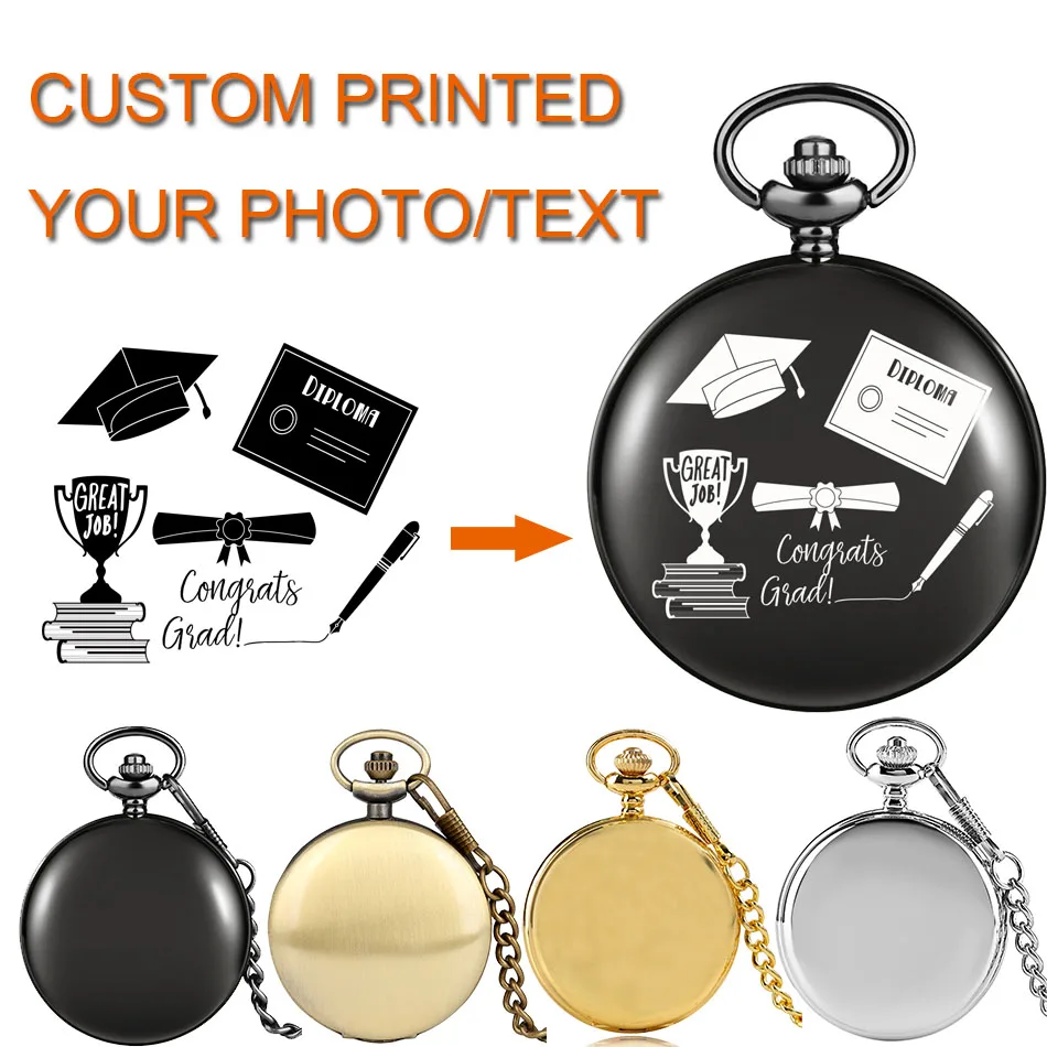 ✅ Персонализированные печатные фото/текст кварцевые карманные часы с коробкой кулон часы подарки годовщина/День рождения/выпускной/Свадьба