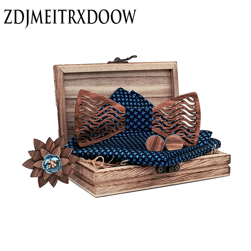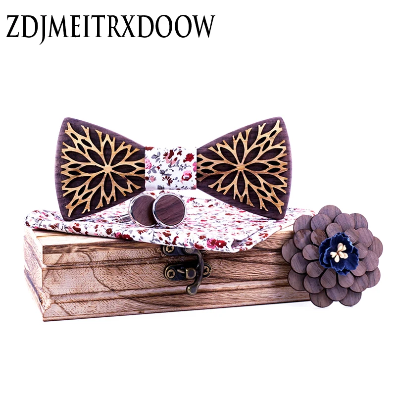 ✅ Новый дизайн деревянные полые деревянные бабочки-Галстуки Галстук-бабочка с платком запонки брошь для Для мужчин Рождественский подарок к...
