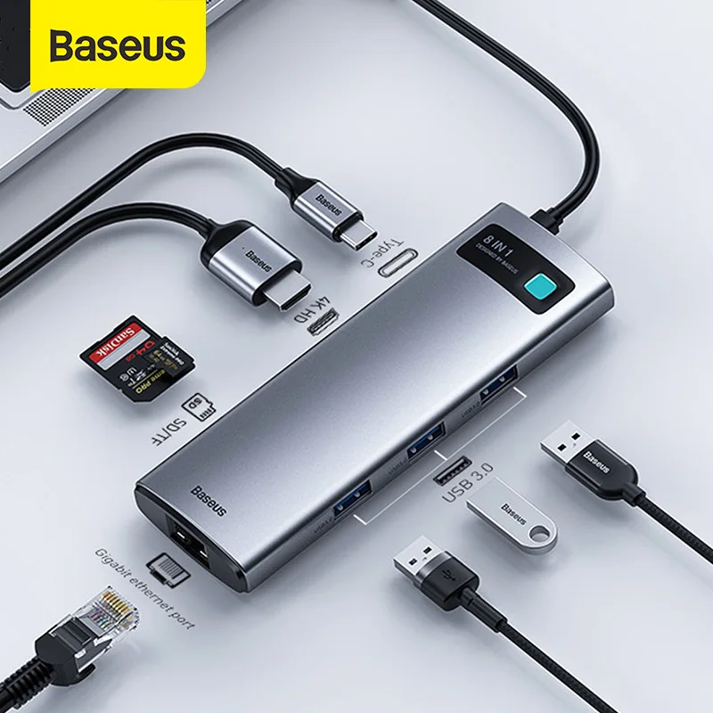 ✅ Baseus USB C концентратор Тип C на HDMI-совместимость с USB 3,0 адаптер 8 в 1 Тип C концентратор USB док-станция для MacBook Pro/Air тетрадь USB C сплиттер
