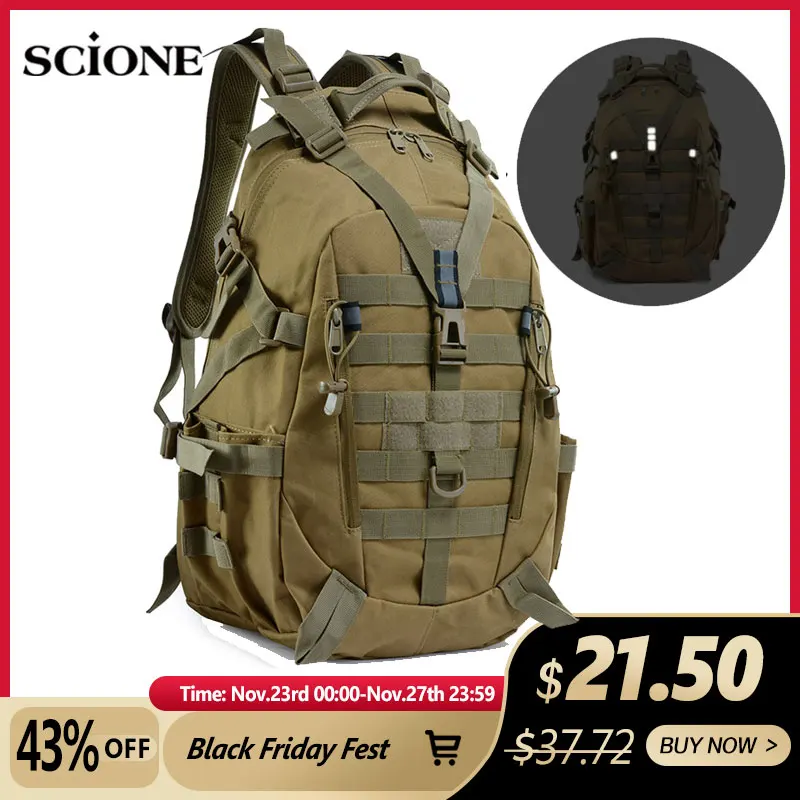 ✅ Рюкзак для кемпинга 40 л, военная сумка, мужские дорожные сумки, тактический армейский рюкзак Molle для скалолазания, походов, активного отдыха,...