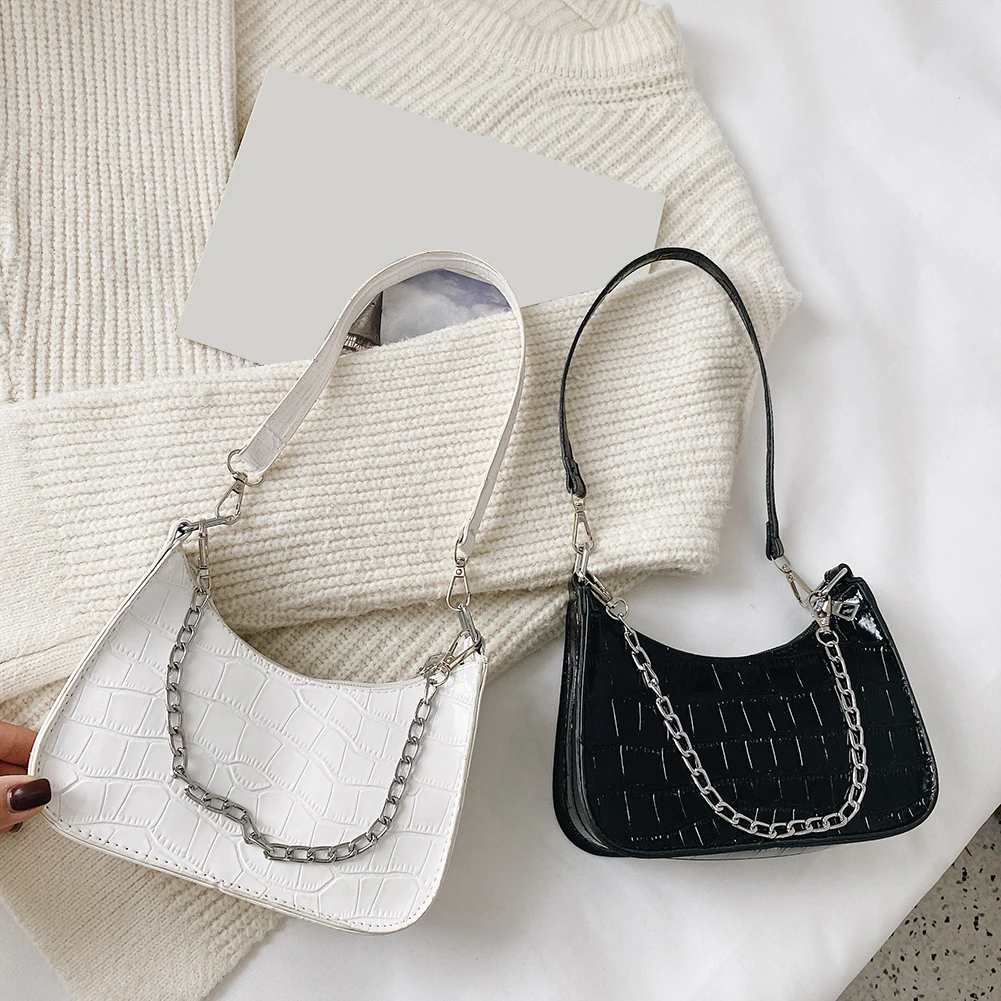 ✅ Модные солнцезащитные очки в стиле ретро, с тиснением под крокодиловую кожу женские сумки из натуральной кожи для повседневной носки из PU искусственной кожи на ремне Женские Элегантные однотонные Цвет цепи