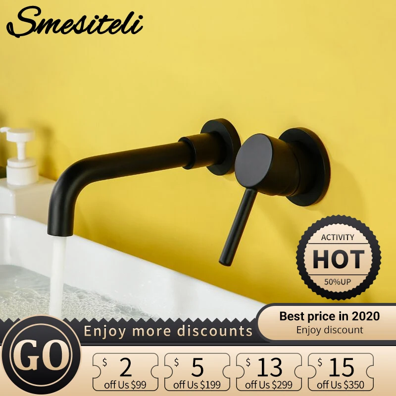 ✅ Кран для раковины ванной комнаты, смеситель для ванны, настенный латунный матовый черный с одной ручкой, набор горячей и холодной воды, белы...