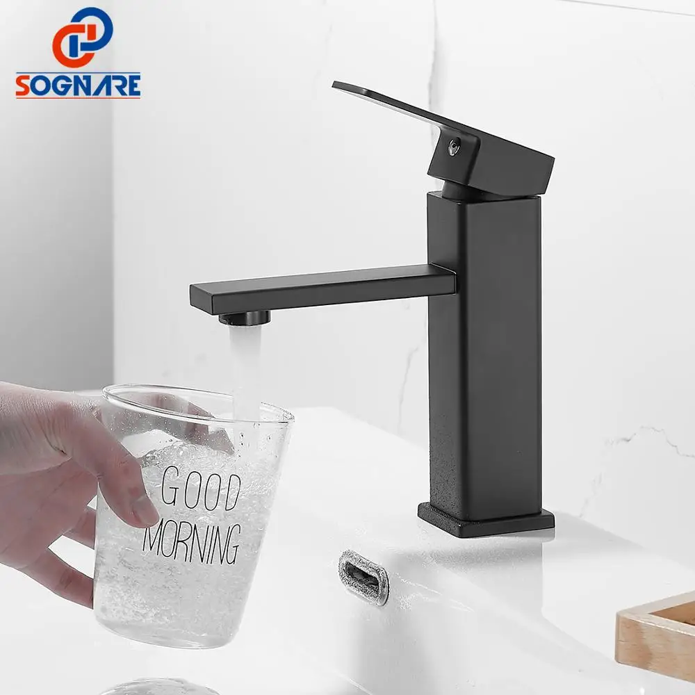✅ Роскошный смеситель для ванной комнаты, кран для раковины с одной ручкой, черный кран для горячей и холодной воды