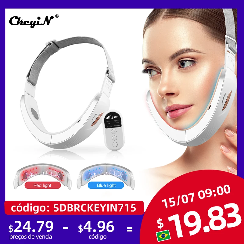 ✅ CkeyiN Chin V-Line Up Lift Belt Machine синий светодиодный Фотон терапия лифтинг для лица Массажер для похудения Вибрация двойной подбородок Редуктор 48