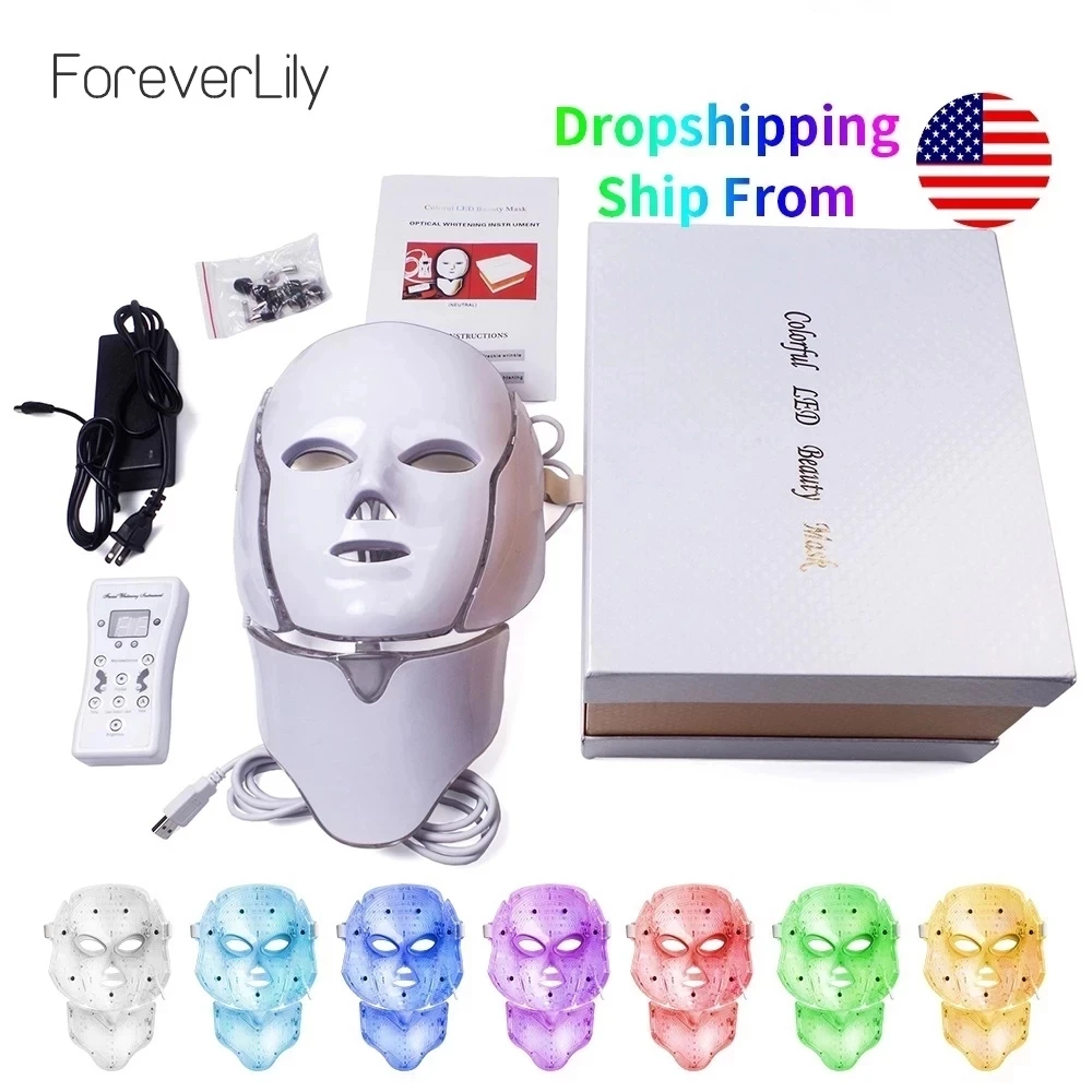 ✅ Foreverlily 7 цветов светильник светодиодный маска для лица с шеи омоложения кожи Уход за лицом лечение Красота против акне терапевтическое Косметическое Отбеливание