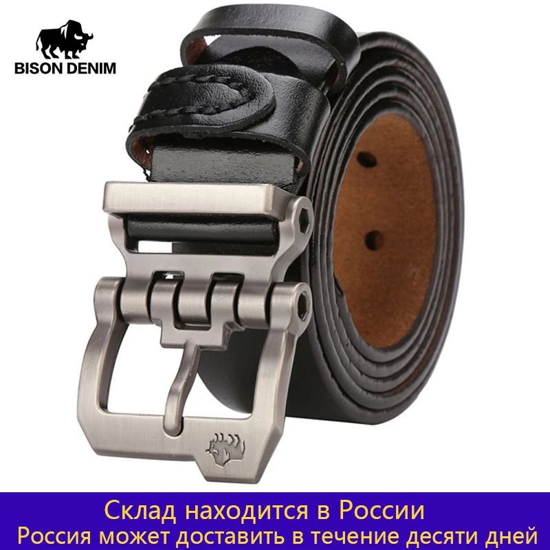 ✅ Мужской винтажный ремень BISON DENIM, из натуральной воловьей кожи коричневого цвета с пряжкой, под джинсы, N71223
