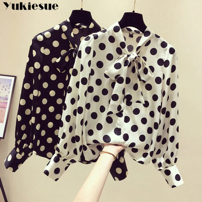 ✅ Летняя женская рубашка с длинным рукавом и принтом в горошек, блузка для женщин, женские блузы, Женские топы и блузы шифоновые рубашки для же...