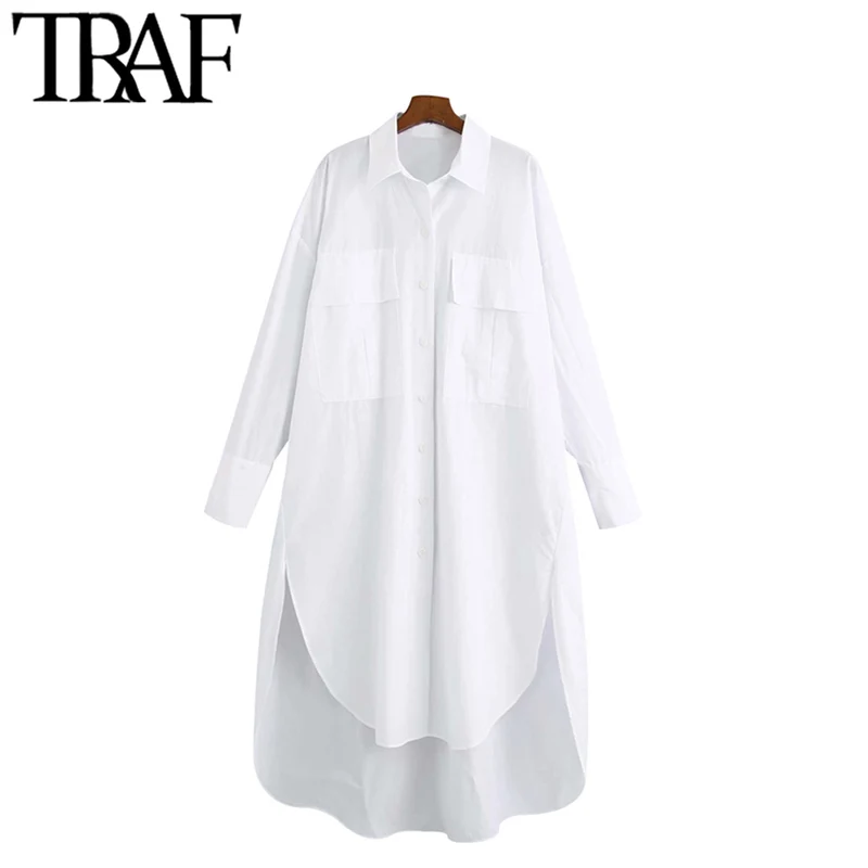 ✅ Женские свободные блузки в полоску TRAF, винтажные офисные рубашки с длинными рукавами и карманами, топы
