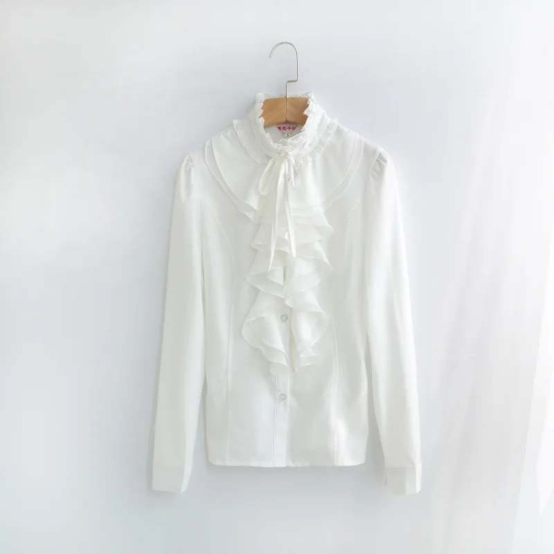 ✅ Женские рубашки и блузки женственная блузка Топ с длинным рукавом Повседневная белая с отложным воротником OL стиль женские свободные бл...