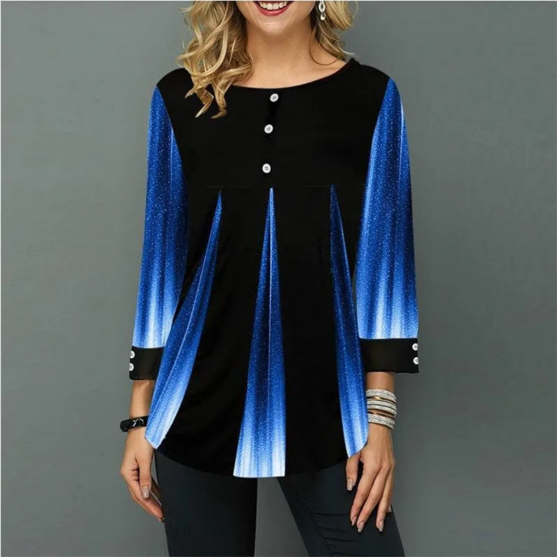 ✅ Женская блузка с 3D градиентным принтом, Повседневная Блузка с рукавом 3/4, большие размеры 5XL, весна-лето