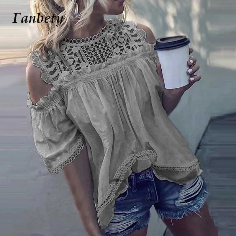 ✅ Белые кружевные открытые Хлопковые женские блузки без рукавов с круглым вырезом, сексуальная женская блуза, Топ свободный, однотонные рубашки Blusa 5XL