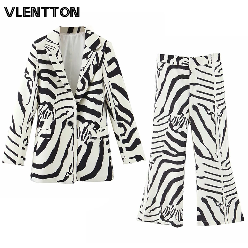✅ Женский винтажный костюм с брюками с принтом зебры, офисный пиджак на одной пуговице + широкие брюки, комплект из двух предметов, осень 2020