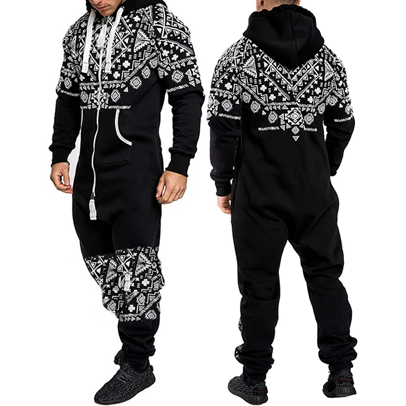 ✅ 2020 Для мужчин s цельное Gar Для мужчин t пижамы Для мужчин Твердые Сращивание комбинезон, костюм с застежкой-молнией толстовка с капюшоном Муж...