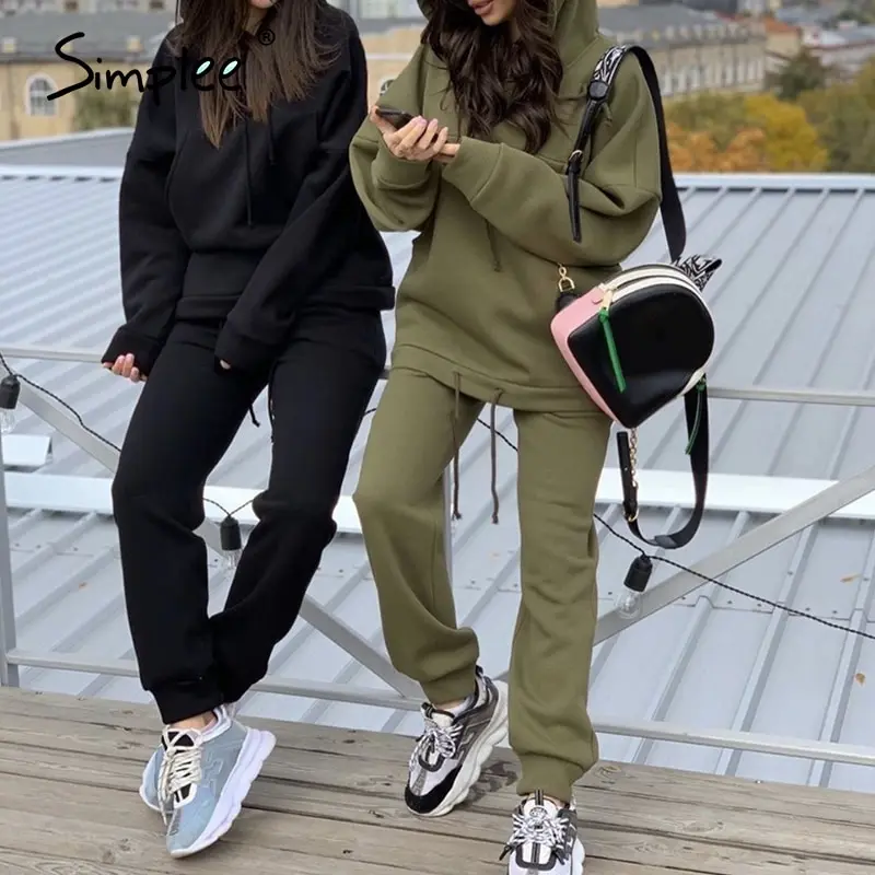 ✅ Модный толстовка с капюшоном Simplee, толстый спортивный костюм с длинным рукавом, Свободный Повседневный костюм, Осень-зима, Женский комплект ...