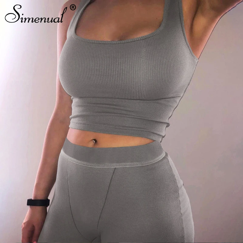✅ Simenual, повседневный спортивный комплект в рубчик для женщин, без рукавов, для тренировок, для активного отдыха, комплект из 2 предметов, топ на...